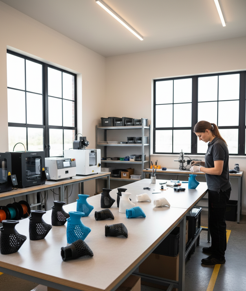 Después de la impresión, realizamos ajustes finos, detalles de superficie y acabados manuales. Esto asegura una sensación perfecta al tacto, bordes suaves y un resultado funcional y estético listo para entrenar o competir.